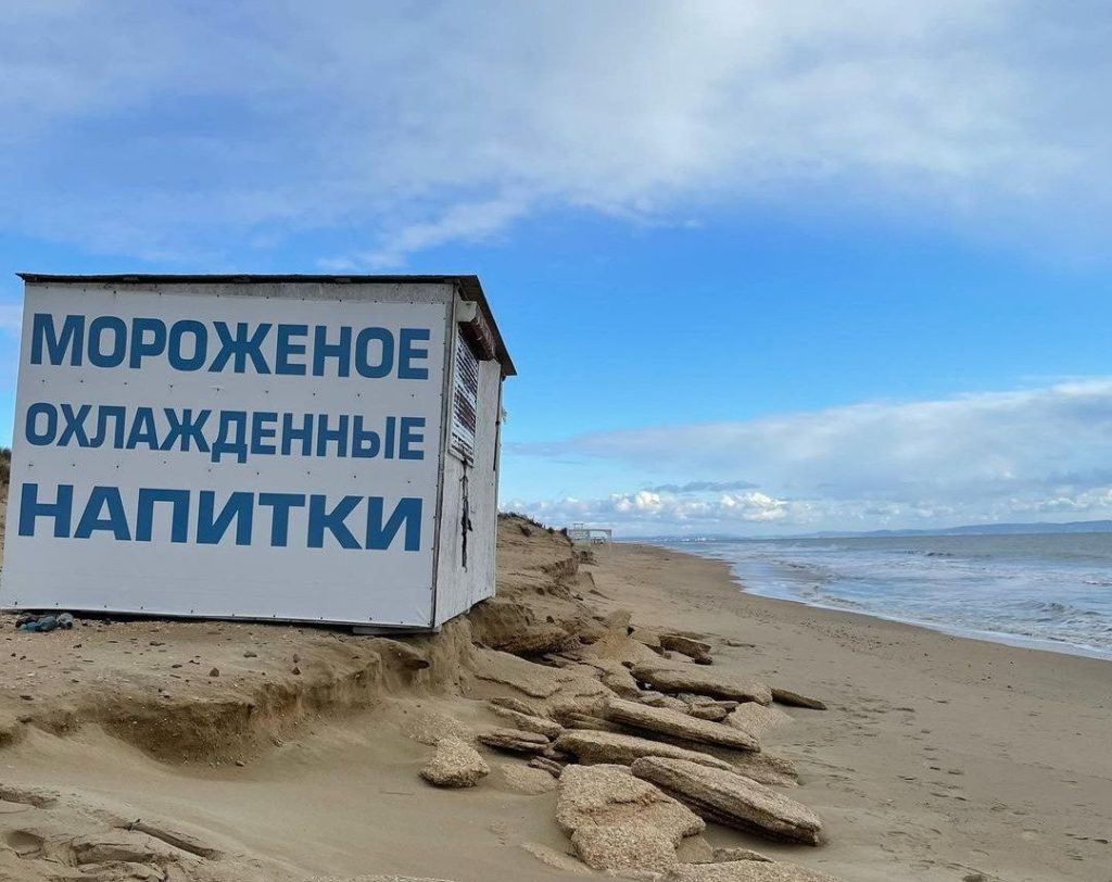 Видео о смытом пляже в Благовещенской появилось в соцсетях. На кадрах видно, что береговая линия из-за штормов сдвинулась на приличное расстояние. Волны вымыли большую часть песчаного пляжа, и море подобралось вплотную к пляжным постройкам. Так, например, киоск, который раньше находился на приличном расстоянии от воды, теперь стоит словно на обрыве.
