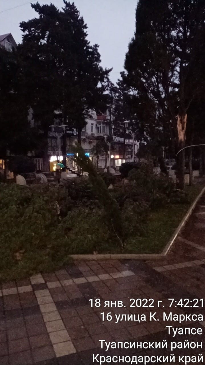 «В ночь и утром на 18 января ветер сломал деревья на улицах К.Маркса, Г.Петровой, Судоремонтников, на площади Октябрьской Революции и С. Перовской, — рассказал начальник МБУ «Предприятие благоустройства города Туапсе» Сергей Сандров. — По всем адресам выехали наши бригады, ведут распил и уборку поваленных деревьев. Это не считая сорванных веток и наносного мусора».