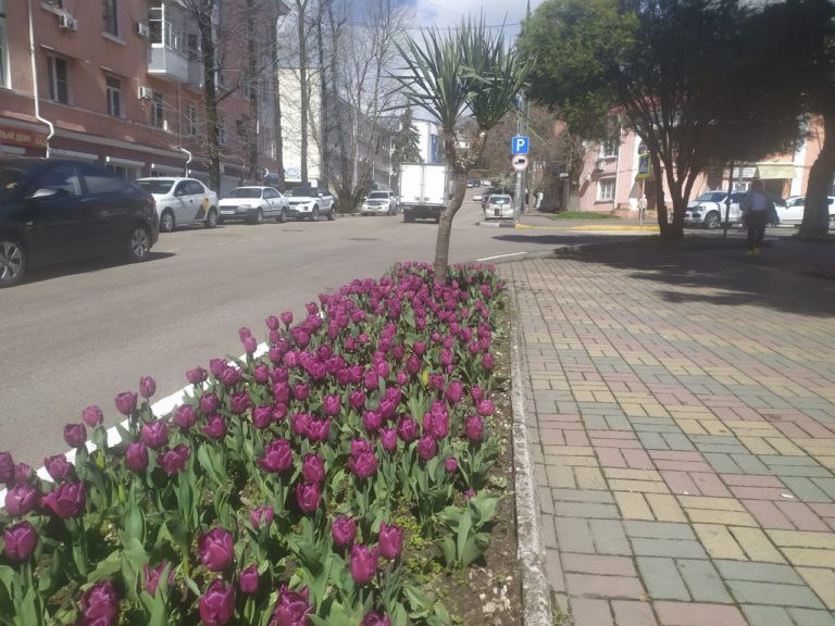 «Туапсинцев и гостей города уже радуют своим цветением лиловые тюльпаны, — рассказал начальник МБУ «Благоустройство города Туапсе» Сергей Сандров. — Вот-вот распустятся желтые. На посадку мы выбираем цветы на крепких коротких ножках, которые устойчивы в дожди и ветреную погоду. За несколько лет тюльпаны стали визитной карточкой весеннего Туапсе».
