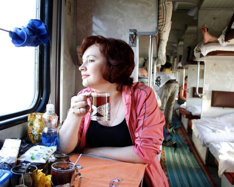 Интерьер поезда стилизован под 1980-е годы, однако вагоны оснащены всем привычным современным оборудованием. В зависимости от толщины кошелька можно выбрать плацкар, купе, СВ, или общий вагон с сидячими местами.