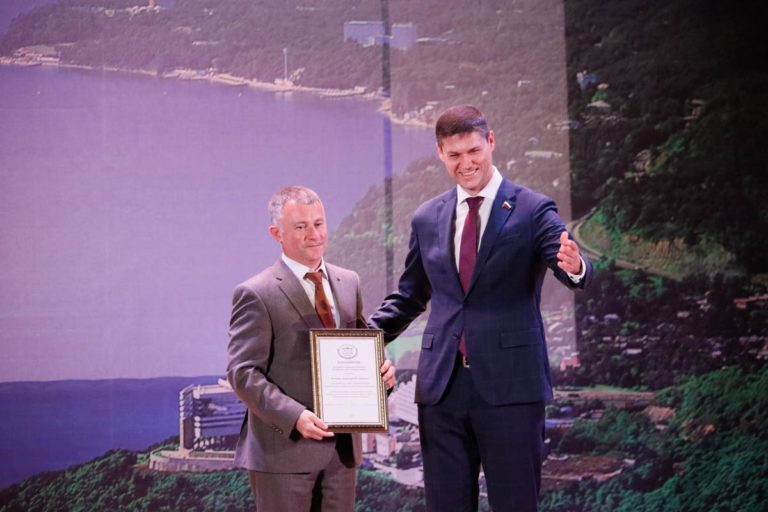 Сергей Алтухов вручил на торжественном собрании Благодарность Государственной Думы РФ За профессионализм и личный вклад в организацию детского отдыха и оздоровления в Краснодарском крае заместителю главы Туапсинского района по социальным вопросам Анатолию Ачмизову и директору школы № 18 села Тенгинка Андрею Андрееву.