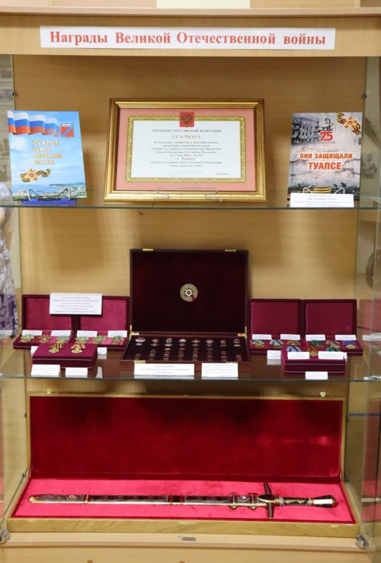 — Меч стал одним из центральных экспонатов стационарной выставки «Туапсе в годы Великой Отечественной войны». В экспозицию входят Грамота Президента России о присвоении Туапсе звания Город воинской славы, а также комплект медалей и орденов, учрежденных для награждения в годы Великой Отечественной войны. Такие комплекты были изготовлены для музеев по заданию Президента России к 75-летию Великой Победы».