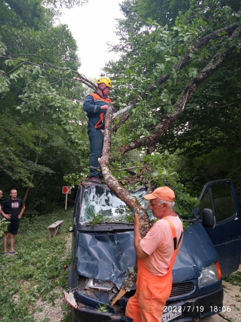 Дерево упало на автомобиль возле села Гунайка в Туапсинском районе