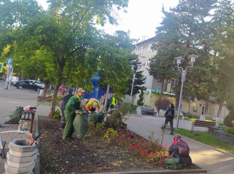 «Сегодня готовим клумбы под посадку — очищаем от остатков отцветших растений, очищаем почву, — рассказала дендролог МБУ «Благоустройство города Туапсе» Ольга Шульга.