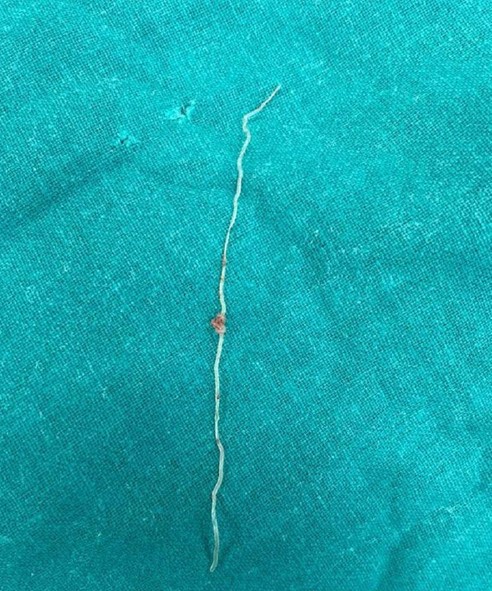 Разрезали и удивились. Странное новобразование оказалось 12-сантиметровым паразитом. Хирург заявил, что за 10 лет практики у него такое впервые.