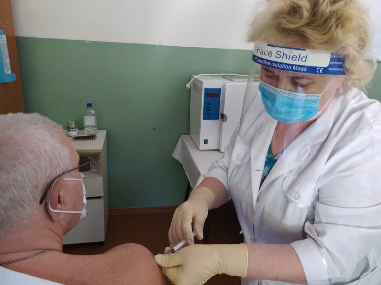 На снимке: фельдшер села Вольное Елизавета Ляхута прививает от гриппа жителей села