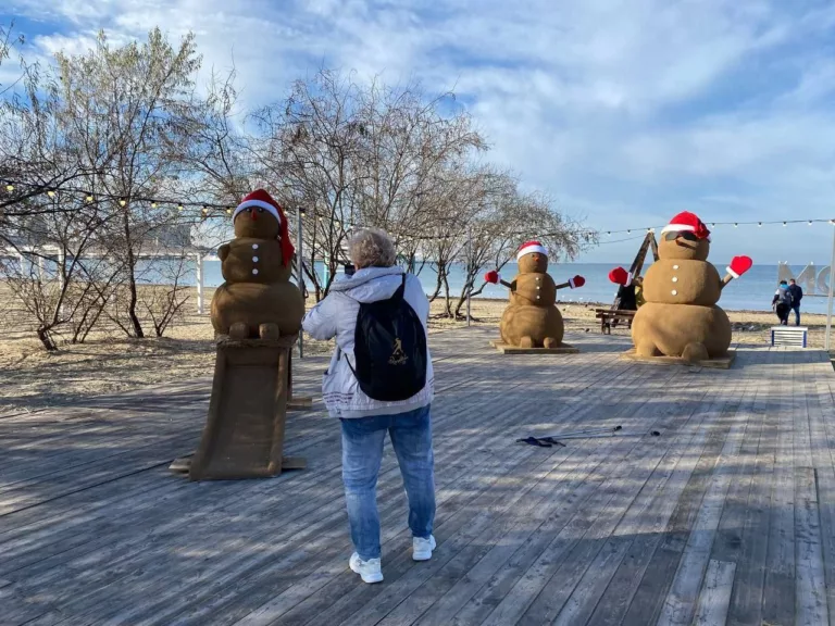 Семью песковиков – южных братьев снеговиков – в этом году вновь установили в лаунж-зоне анапского пляжа. Первая скульптура забавного персонажа появилась здесь два года назад и сразу стала популярной среди жителей и гостей курорта.