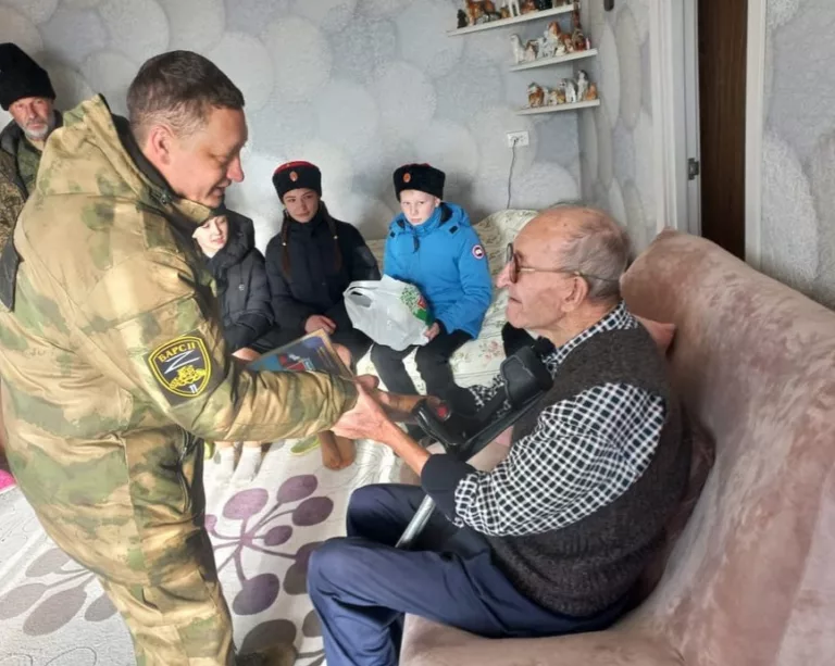 К ветерану также пришли в гости туапсинские казачата.