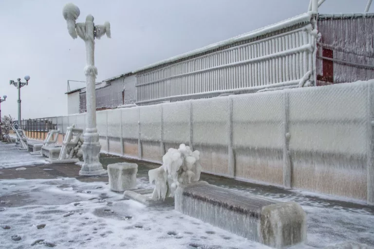 Эпичные снимки набережной в Новороссийске опубликовал телеграм-канал Sega Black-Sea. Ураганный ветер, который уже третьи сутки господствует в городе, море и холод создали настоящие ледяные произведения искусства.