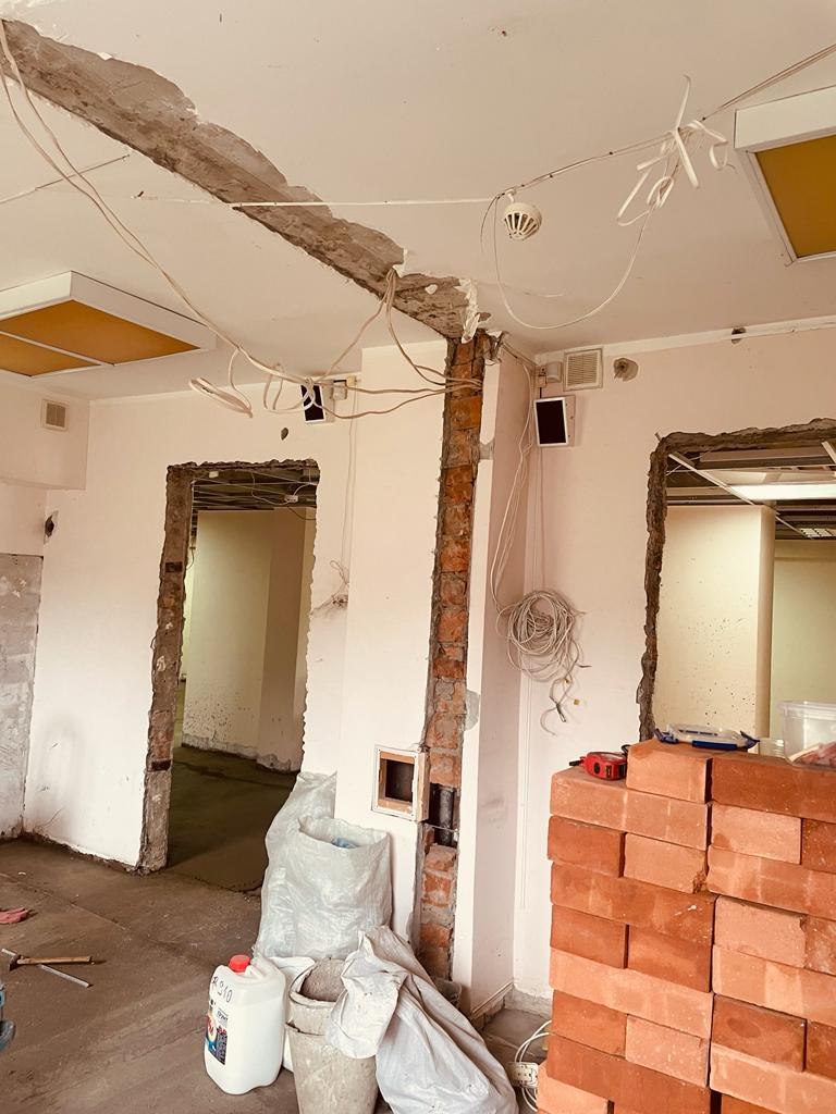 — Изменены некоторые перегородки, выполнены новые дверные проемы. Завезены стройматериалы.