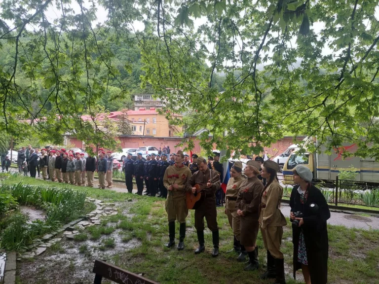 К Дому ветеранов на улице Судоремонтников в День Победы приехала выездная концертная бригада, которая исполнила под окнами героического старшего поколения туапсинцев песни военных лет и поздравила со святым для всех праздником.
