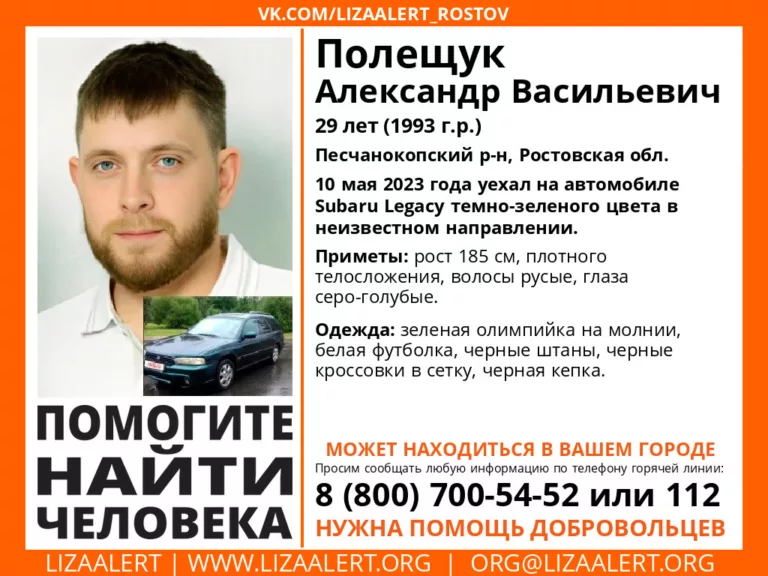 Как сообщает телеграм-канал Kub Mash, автомобиль Subaru Legacy, на котором передвигался Полещук, обнаружили в лесополосе в пяти км от Котельников.