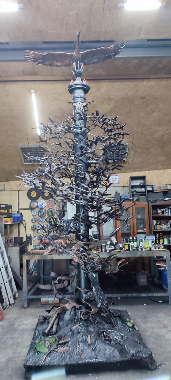 Над композицией «Смерч журавлей» Денис Мильченко трудился больше года в свободное от основной работы время. Его инициативу увековечить в металле память героев-защитников Отчества поддержали 82 кузнеца со всей России и даже из-за рубежа(своих журавлей прислали мастера из 6 стран).