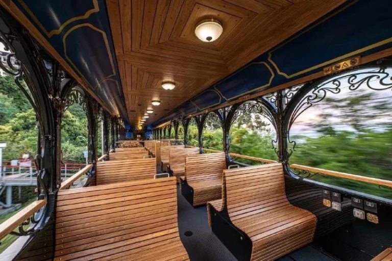 Как сообщает пресс-служба РЖД, открытый вагон выполнен в стиле начала XX века и рассчитан на 80 посадочных мест. Лавки деревянные и с подогревом.