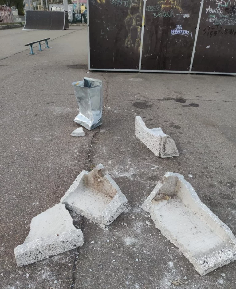 — Однако есть и те, которым, видимо, доставляет удовольствие добавить «ложку дегтя», просто напакостить. На снарядах оставляют «автографы» горе-граффитисты. Но это еще полбеды — закрасить можно. А вот то, что сегодня утром мы обнаружили разбитые бетонные урны — уже просто возмутительно!»