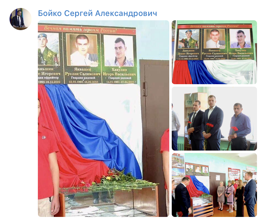 Памятная доска посвящена Денису Даньшину, Игорю Хахулину и Руслану Яквашеву.