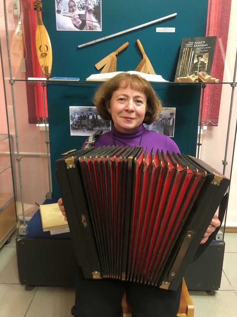 На фото старший научный сотрудник музея Марина Куадже со старинной гармонью.
