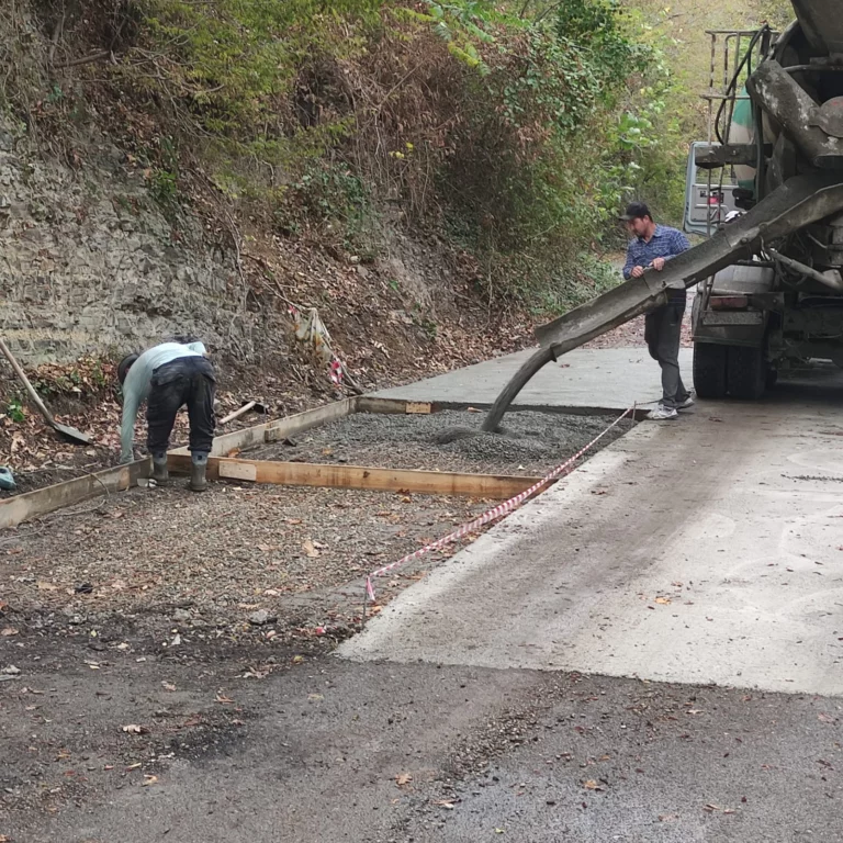 — Мы начали работы по благоустройству, и на сегодняшний день забетонировано 100 метров аварийного участка дороги».