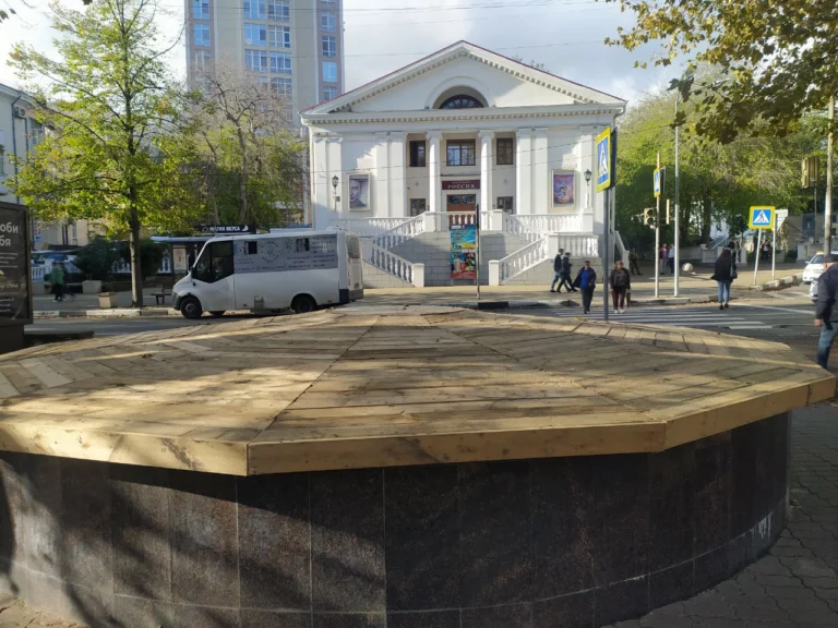 Центральный фонтан на платановой аллее убрали под деревянный настил. Перед этим специалисты провели все необходимые профилактические работы, включающие чистку бассейна, снятие подсветки и форсунок. Традиционно перед новогодними праздниками здесь будет установлена одна из городских елок.