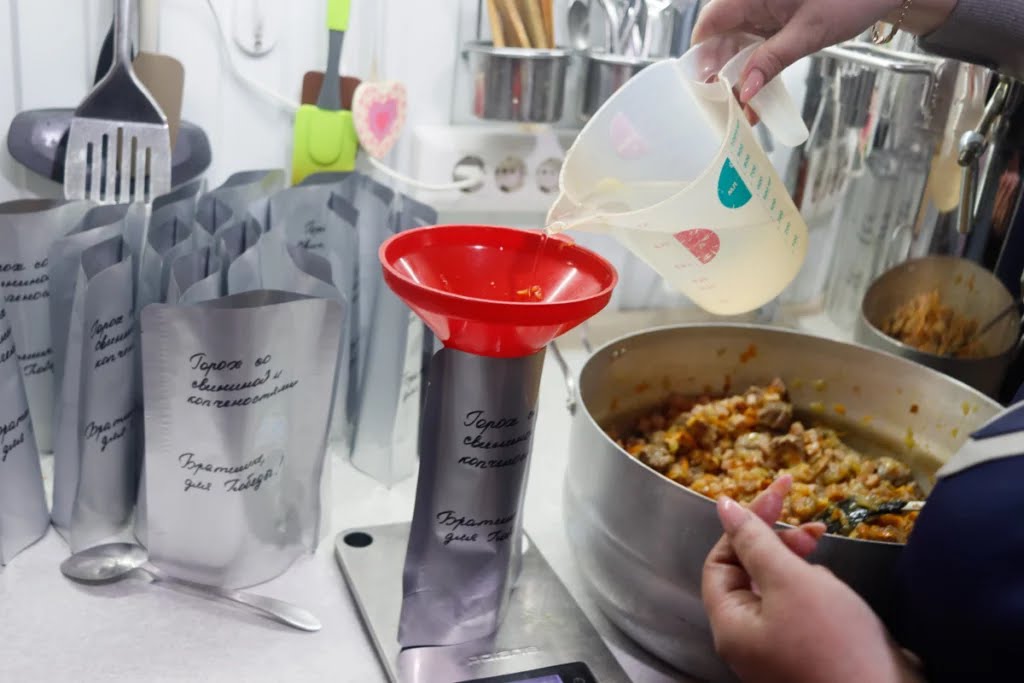 Напомним, что приготовлением мясных, рыбных и овощных блюд занимаются женщины-волонтеры в Туапсе и в Джубге. Эти реторт-пакеты сохраняют свежесть продуктов до двух лет. Их легко транспортировать, легко брать с собой и разогревать в полевых условиях. Солдаты очень благодарны за такую помощь.