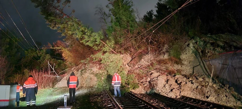 Движение поездов приостановлено, задержано шесть пассажирских составов, время задержки — около 4 часов.