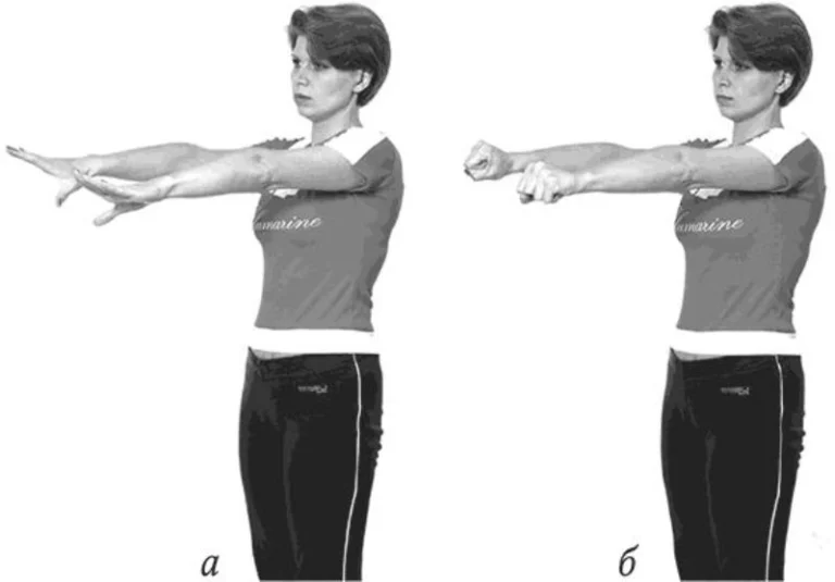 После этого необходимо проделать то же самое, но уже с вытянутыми руками. Вытяните их в стороны, параллельно полу, и повторите все в том же порядка.