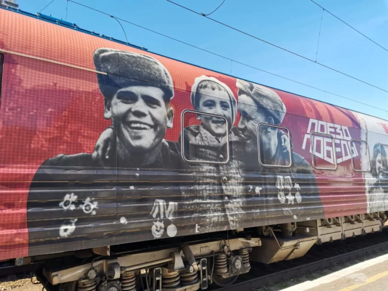 «Поезд Победы» – уникальный передвижной музей, в экспозиции которого вошли образы прошлого нашей страны. В вагонах поезда размещены художественные инсталляции, посвященные Великой Отечественной войне. У каждого вагона своя тематика: цвет нации, Брестская крепость, электричка на фронт, окопы, концлагерь, санитарный вагон, развитие науки, вагон банно-прачечного комплекса, блокада Ленинграда, штабной вагон, бронепоезд, дорога домой.