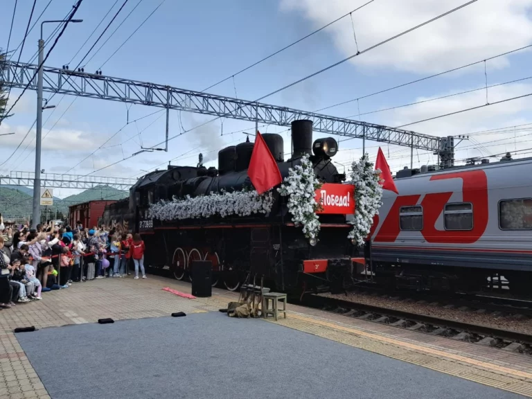 Туапсе стал вторым городом в маршруте после Минеральных Вод. В этом году поезд ведет паровоз Эр 739-99. Именно такие работали на прифронтовых территориях во время Сталинградской битвы.