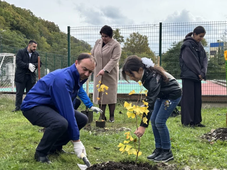 Во дворе туапсинской школы № 11 посадили 30 гинкго билоба - в честь русских путешественников-первооткрывателей.