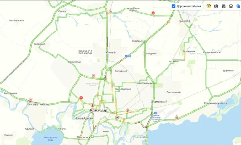 Загруженность дорог в краевой столице оценивается сервисом уже в 10 баллов (на момент 12:00), пишет «Кубань 24».