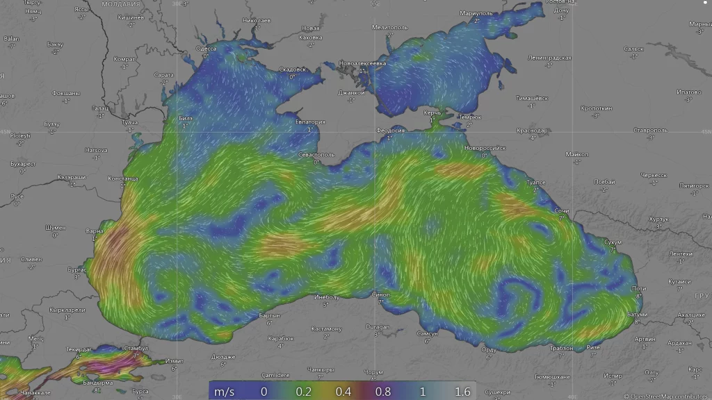 — Видно, что течения не должны вынести разлитые нефтепродукты в район Сочи и Туапсе. Авария произошла в районе Керченского пролива. Основной поток идёт в направлении Крымского полуострова. Второстепенный будет выноситься к юго-восточному побережью Турции.