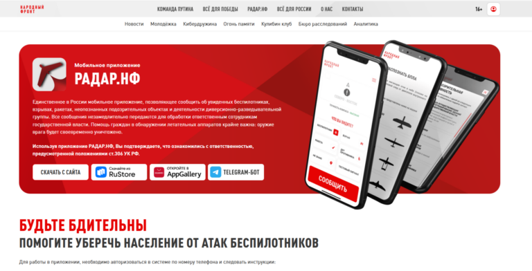 Мобильное приложение, с помощью которого можно сообщить об увиденных БПЛА, ракетах, взрывах, подозрительных объектах и ДРГ, разработали в Народном фронте. «РАДАР.НФ» на сегодняшний день является единственным мобильным приложением в России с такими функциями.