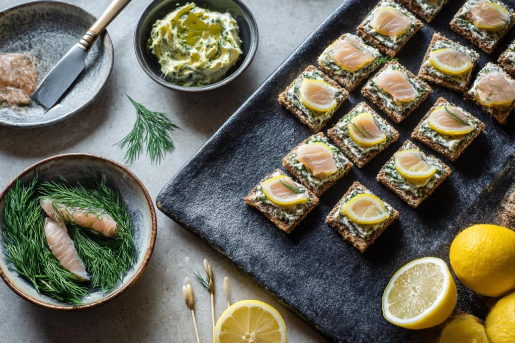 Эти бутерброды-канапе с селедкой, укропным маслом и лимоном станут любимой закуской на любом праздничном столе. Даем гарантию, что гости будут просить сделать их каждый раз.
