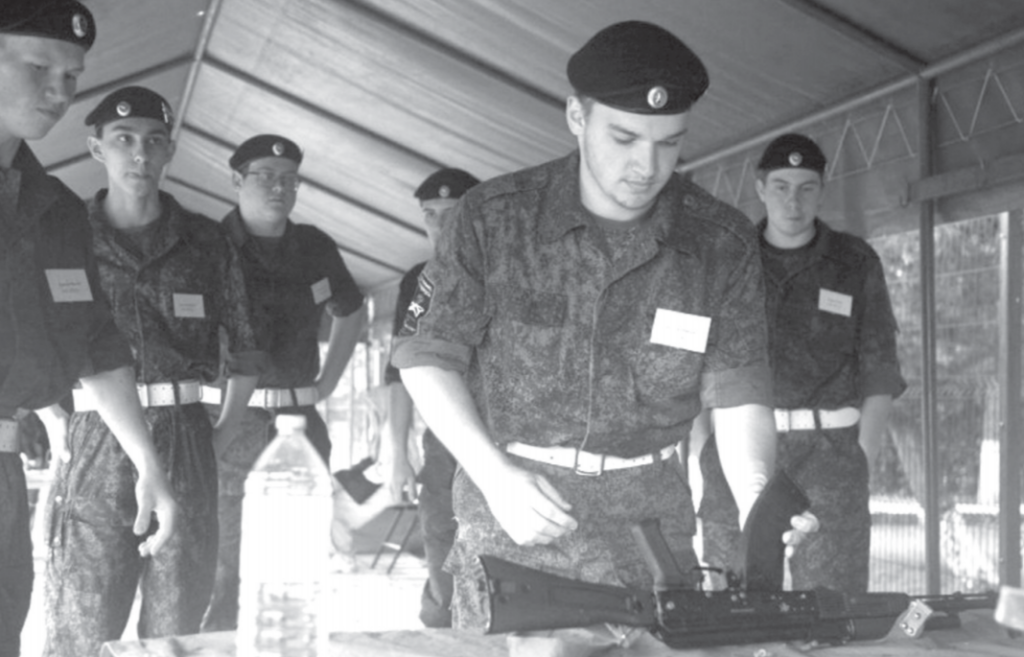 Участникам нужно было пройти испытания по восьми позициям – строевая подготовка, метание гранаты, спортивное ориентирование, сборка-разборка АК-47, подтягивания ,военная медицина, стрельба и безопасность. Каждый этап требовал от участников не только физической подготовки, но и знаний, умения работать в команде и быстро принимать решения. Особым «экзаменом» для ребят стала погода, совсем не майская, но все команды достойно справились с испытаниями.