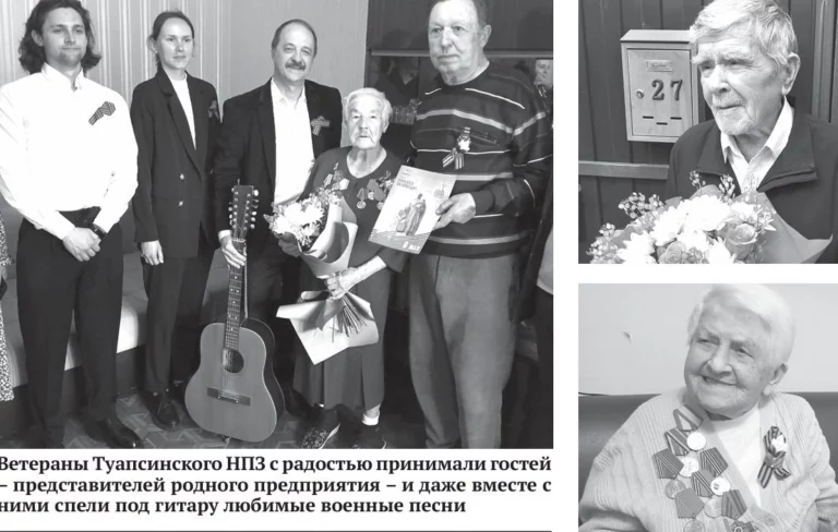 Накануне Дня Победы от имени всего коллектива Туапсинского НПЗ ветеранов завода поздравили на дому — принесли подарки, тепло пообщались и даже вместе спели любимые песни военных лет.