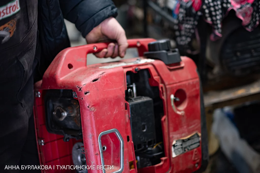 Мастера зовут Евгений Вершинин. Он не считает, сколько таких генераторов и бензопил прошло через его руки. Говорит: «Новый генератор стоит от 15 до 55 тысяч. Их бойцам нужно много, особенно зимой. Не хватает новых, восстанавливаем».