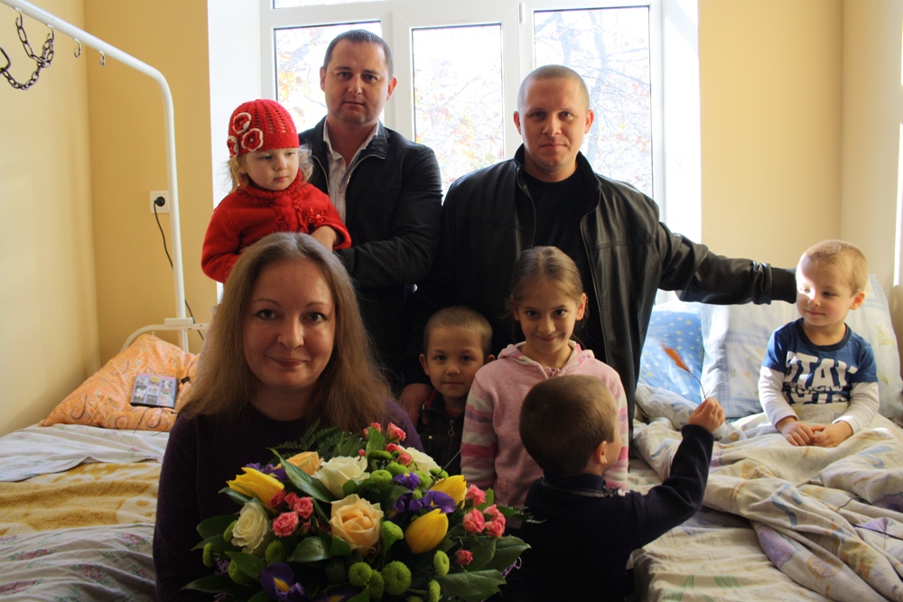 В сентябре малыши неудачно «порезвились», и Тема поломал ножку. Но вот кость срослась, спицы удалили, и теперь надо разрабатывать ножку. Папа Игорь в последние две недели сам управлялся и с малышами, и со старшими, едва находил время сомкнуть глаза. Но в больнице, куда вместе со всей семьей навестить маму и братика приехал депутат горсовета Александр Фириченко, получился настоящий маленький праздник.