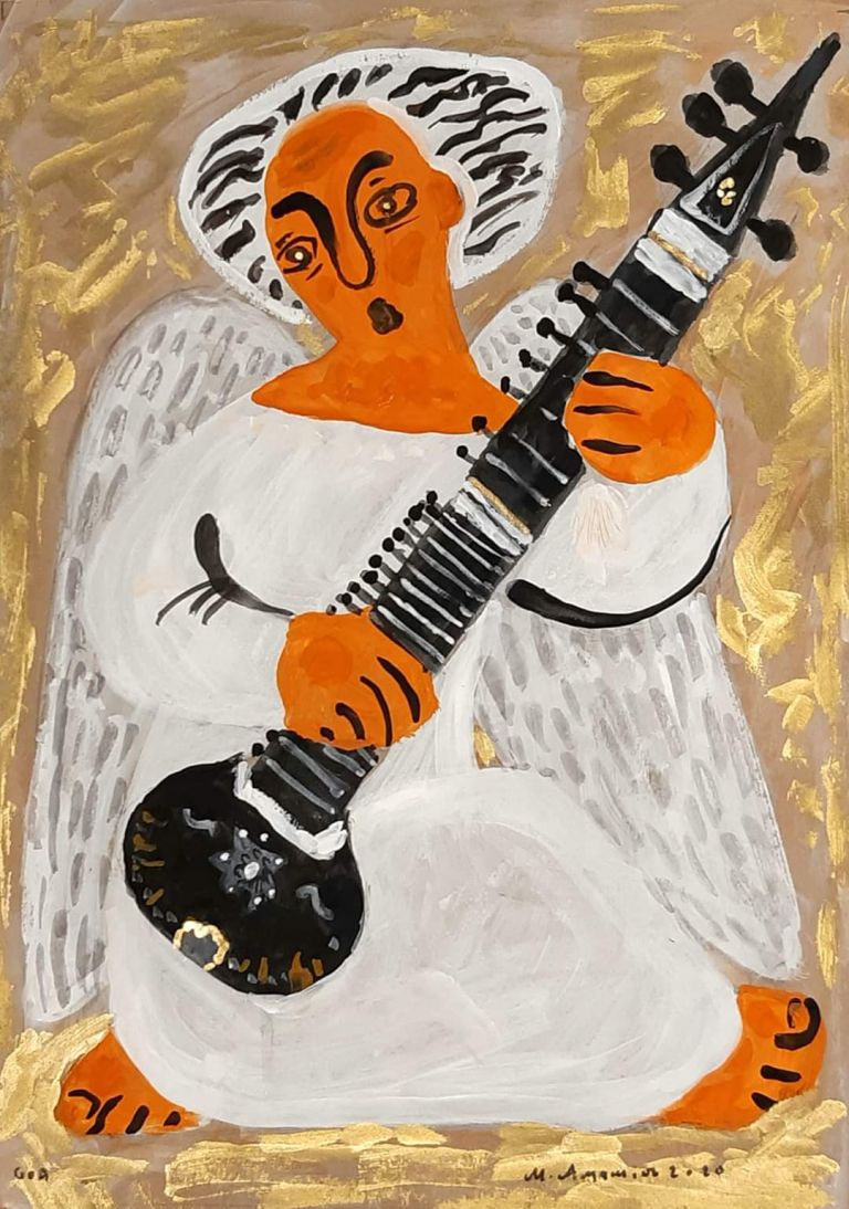 Михаил изобразил Ангела с ситаром, прокомментировав такой вариант "отсутствием балалайки