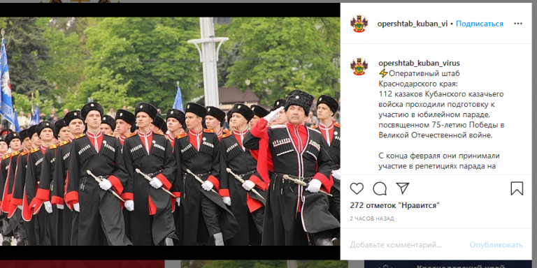 Но в связи с событиями, развивающимися из-за эпидемии коронавируса и переноса мероприятий в честь Дня Победы, все участники будущего парада были централизованно доставлены в Краснодарский край.