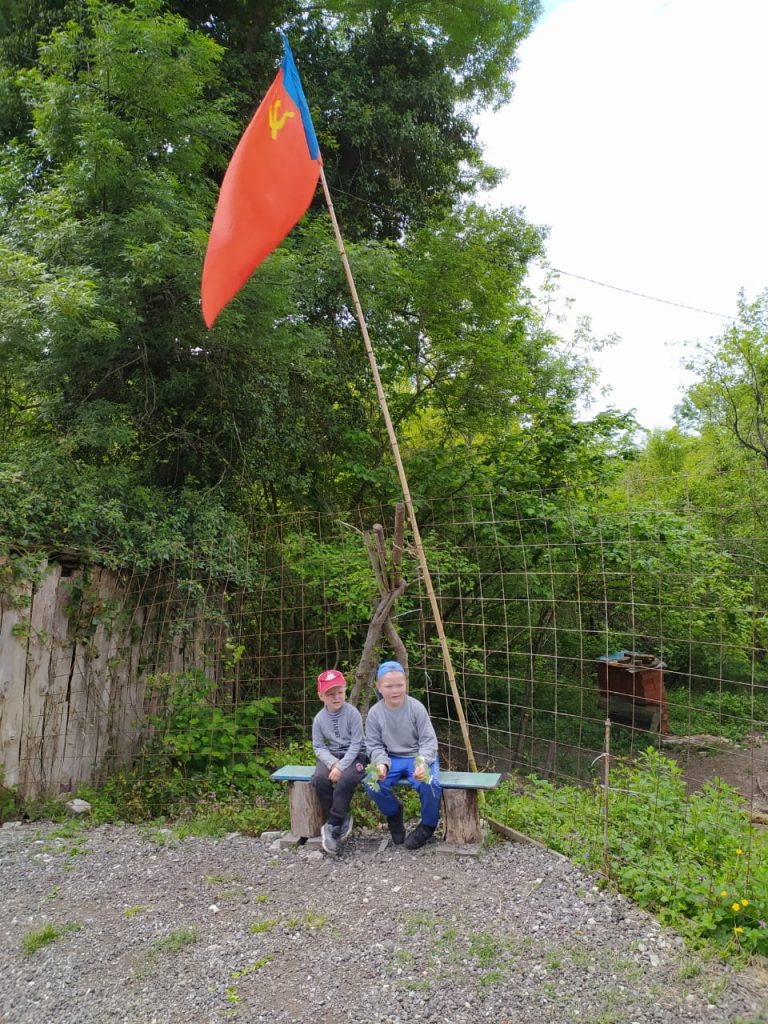 Флаг вместе с георгиевской лентой можно установить на окне или на балконе, на доме, на приусадебном участке.