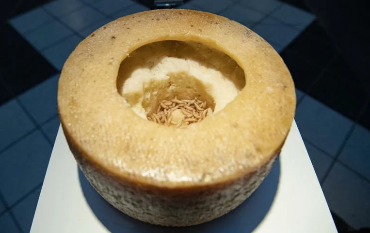Это сыр – гордость Сардинии. Обычный сыр пекорино, но только передержанный. Тут нужна особая тактика приготовления. Сыр должен сгнить ровно до такой степени, пока в нем не отложит личинки сырная муха.