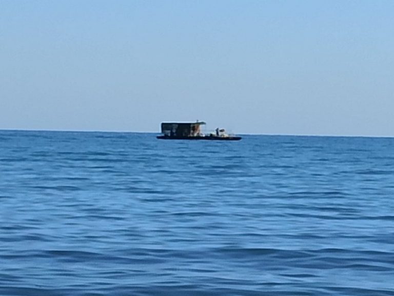 Мы также поинтересовались, что это за плавсредство. На лодку не похоже, на катер — тоже. Плавучий дом? Оказалось — плавучая баня!