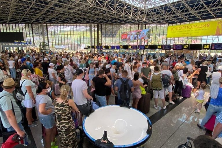 Никогда еще не было так многолюдно в аэропорту Сочи (Адлер), как 5 июля. Из-за большого наплыва туристов стало невозможным соблюдать рекомендуемую социальную дистанцию. Об этом пишут «Кубанские новости».