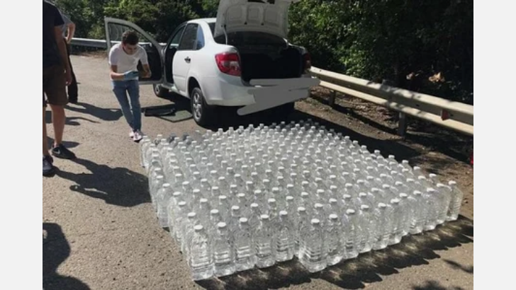 220 пластиковых бутылей спирта пытался провезти на своей легковушке 41-летний мужчина через ДПС города Горячий Ключ.