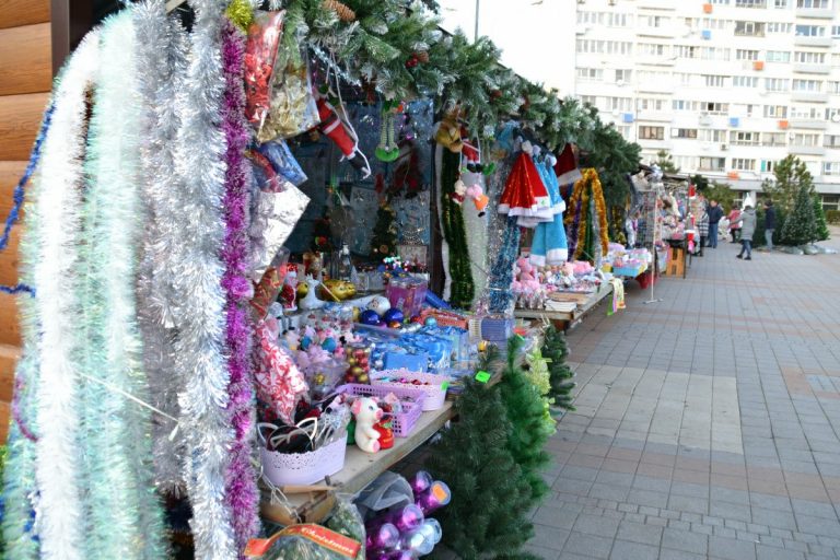 Традиционно здесь можно будет прибрести сувениры, подарки к празднику, елочные украшения и другие новогодние товары.