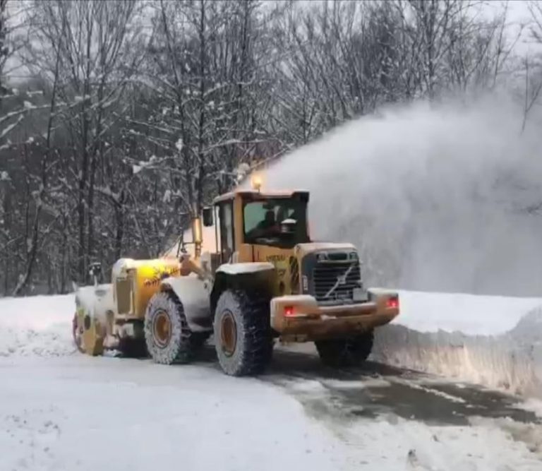 Снегоуборщик расчистил дорогу на Терзиян и между аулами Большое и Малое Псеушхо