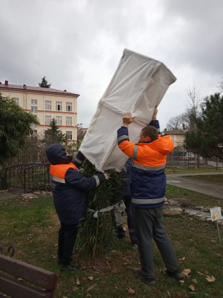 Туапсинская служба озеленения спасала теплолюбивые культуры.