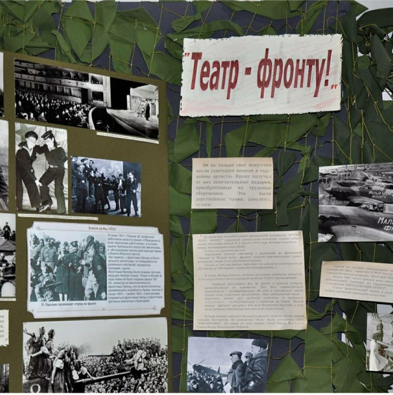 Представлены афиши, программки, объявления и, конечно, фотографии военных лет.