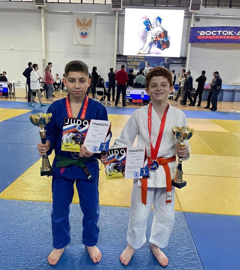 Альбер Чакрян для своих 13 лет уже титулованный спортсмен, победитель и призер краевых и межрегиональных соревнований, недавно в составе сборной России стал первым в командном первенстве России по дзюдо до 15 лет , Славе Сидельникову -12, но он также неоднократный победитель многих турниров.