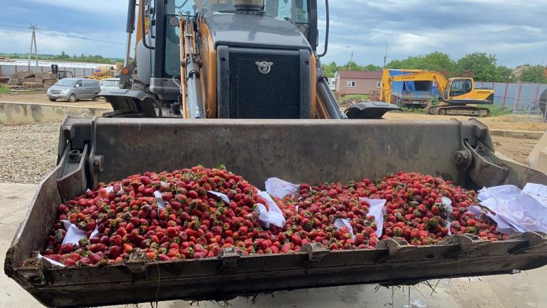 В соцсетях распространились снимки клубники, которую перевозят в ковше бульдозера. Начальник отдела садоводства министерства сельского хозяйства Евгений Крицкий назвал это провокацией, желанием блогеров собрать большую аудиторию.